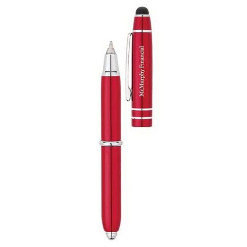 Made of aluminum with chrome accents, these stylus custom pens features a handy LED light and ball point pen. It's like getting three great items in one!