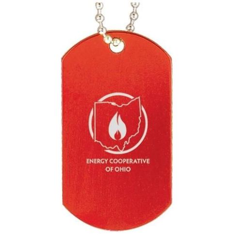 Here's a custom dog tag that's off the chain. The military-style custom dog tag is now a popular and chic way to show off your custom logo or personalized message.