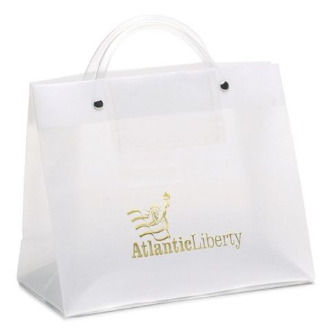 An upgraded look to the classic convention custom bag. This durable hi-density frosted bag features a 5.25" x 3.25" interior clear pocket sized to hold a name badge, conference schedule or thank you card.
