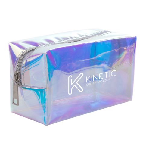 This unique custom holographic travel pouch is ideal for storing make up, toiletries, and anything else you need to take on-the-go! The iridescent color will be sure to make your logo stand out.