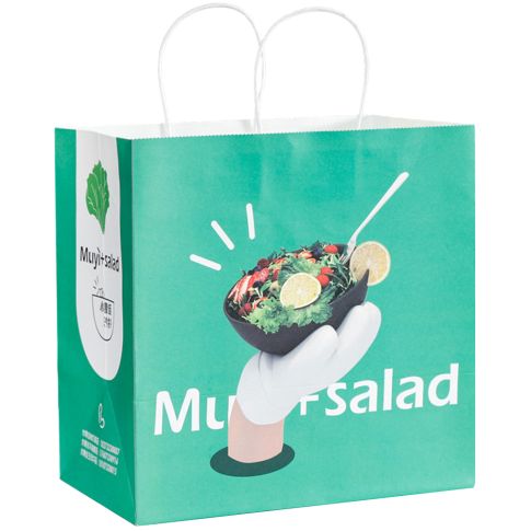 Jumbo sized white kraft carry bags with a twisted paper handle. These bags are strong, stand upright for easy loading, and are ideal for holding takeaway food or large grocery loads.