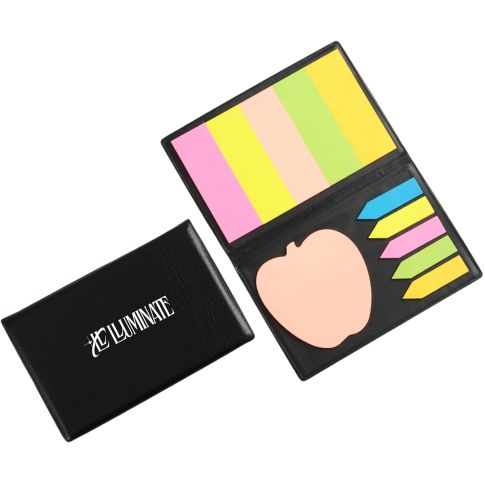 This promo memo case with durable black PU leather cover is a great desktop item for both schools and corporate offices.