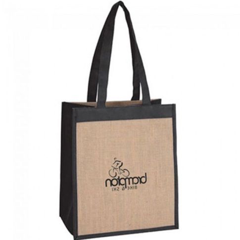 Is embedded with superior looking jute panels both on the front and back as well. Conveniently stitched edges and hems makes it even stronger. Moreover the durably stitched and matching colored 8" gusseted handles makes for a perfect ample space. Custom imprint it with your brand name or logo on it to make it a perfect promotional tool.