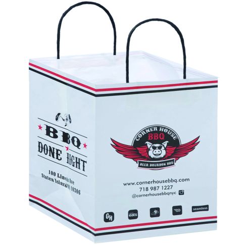 White kraft paper takeout bags are an affordable and secure way to package your food carryout orders.