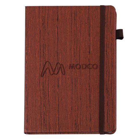 A custom imprinted journal with a wood grain leatherette cover. What better place to jot a note or a thought than in a promotional journal?