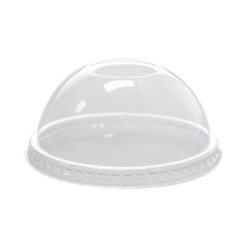 Create the perfect on-the-go product with this PET dome lid! This lid creates a tight and secure seal, helping to prevent leaking and accidental spills. Its featured ability to fit multiple cup sizes cuts down on inventory and storage space. Perfect for your cafe, concession stand, or kiosk, this lid with hole is perfect for smoothies, milkshakes, coffee drinks, and other fun beverage options since there's a hole to place a straw in for easy sipping! Fits 8oz, 9oz PET cups. Rim size - 78mm.