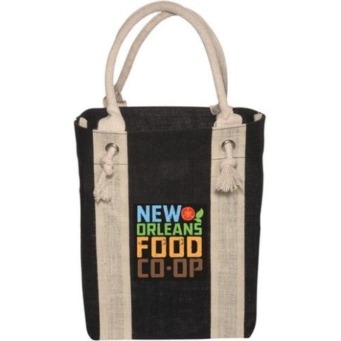 Made from laminated, sustainable natural jute fabric, this custom jute tote is a more eco-friendly and is an excellent alternative to disposable paper or plastic bags.