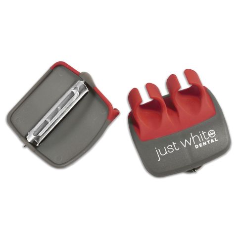 This unique custom peeler is perfect for all your fruits and vegetables. The ergonomic design is perfect for those with arthritis or who have a hard time gripping small items. Simply slip your 2 fingers in the appropriate slots and you're ready to go.