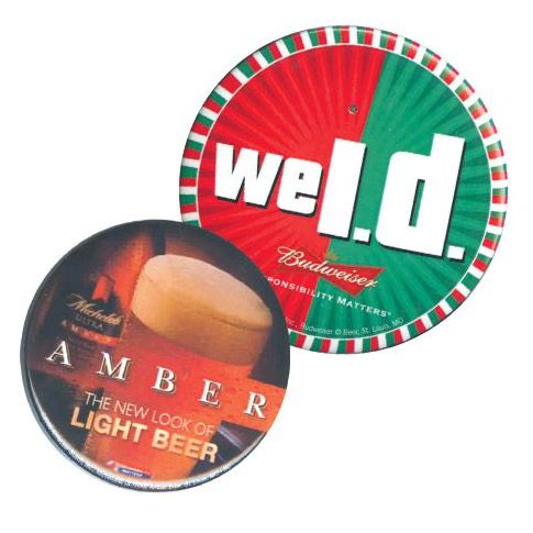 Custom made cutting and assembly dies insure high quality buttons and image registration. All promo buttons are made with full safety pin backs. Your logo will go where they go. Additional imprint locations and/or methods may be available, contact us for details.