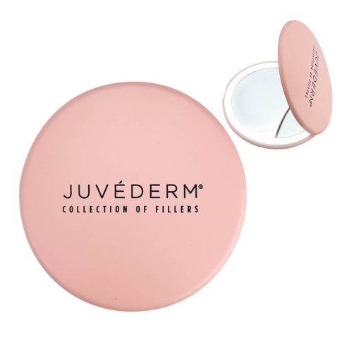 This custom compact mirror will have your logo everywhere! A perfect gift for home, office, or travel use. It has a ring light which can be used in darkness.