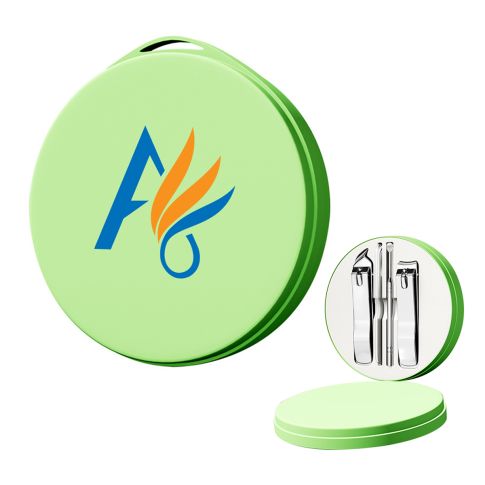 Stay prepared for nail care while on the move with this stylish custom case! This appealing round manicure case easily fits into a makeup bag, purse, desk drawer, or briefcase.