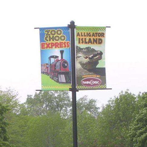 Banners are made with pole hems top and bottom with both front and back imprints. Single and double bracket options are available for an additional fee. Additional imprint locations and/or methods may be available, contact us for details.