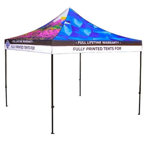 Full color coverage on this custom tent will keep your logo visible and you out of the elements at your next event.