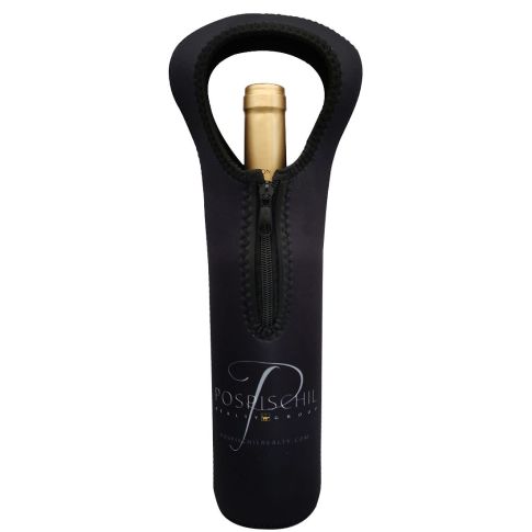 Keep your wine chilled while traveling with this 3.5mm neoprene custom wine tote. The custom wine tote holds one 750ml bottle of wine and features a wide handle for comfort and a zippered closure to secure the bottle inside the bag.