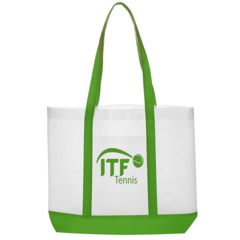 Custom Non-Woven Boat-Style Promo Tote w/ Colored Trim - 18"w x 14"h x 3.75"d