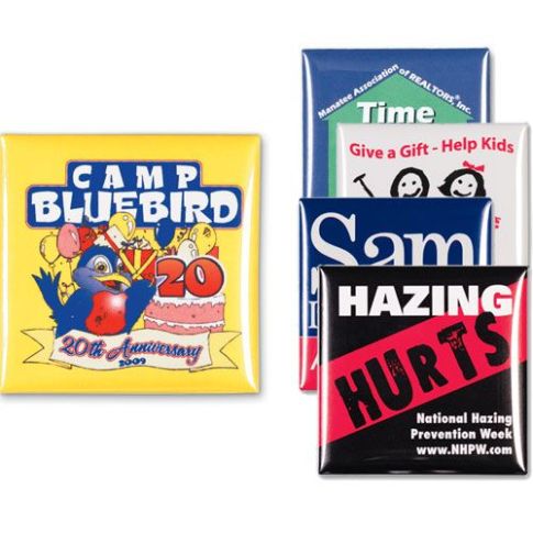Safety Pin Back Logo Button - 2" - Square