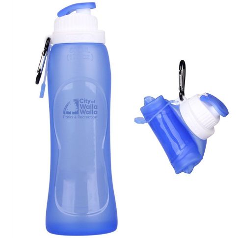 17 oz. soft silicone custom water bottle allows you to roll-up and hang on the bag for easy carry.