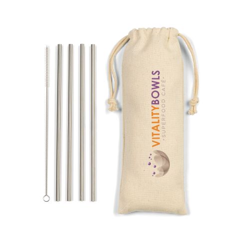 Sip your favorite beverage while carrying one of these Stainless Steel Straw Set in Custom Cotton Pouch. By taking this travel package with you everywhere you go. Get your company's logo imprinted on the pouch today!