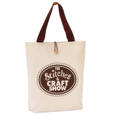 Custom Two-Tone Button Up Canvas Promotional Tote Bag - 14.5"w x 15"h x 3"d